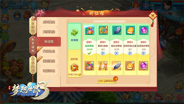 开启昕征程后,完成指定任务目标即可领取奖励。解锁进阶版昕征程还可领取绝品宝图、双技能龙角护符等超值奖励!