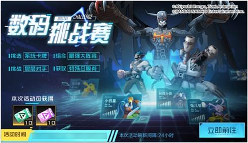 10月23日05:00-10月26日05:00,数码挑战赛即将开启,各位队长在活动期间内,前往活动中心即可参与数码挑战赛。队长们可在系统随机生成的数码宝贝中,任意挑选最多10张数码宝贝卡牌。