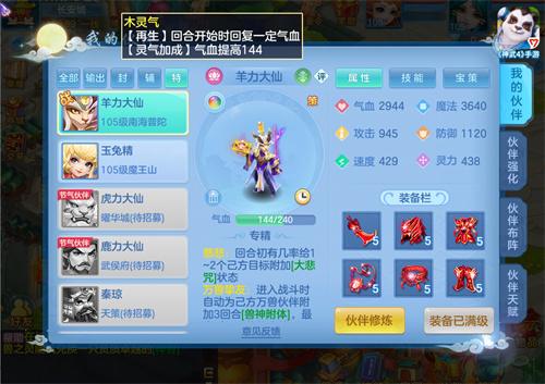 本周维护更新后,节气伙伴正式加入三界,分别为虎力大仙、鹿力大仙、羊力大仙。等级达到100级的少侠可在节气秘境中寻找到大仙分身获得该伙伴,特殊情况下80级以上的角色可以在暗雷战斗中获得该伙伴。节气伙伴属于精英伙伴,获得后持续30天,不可以和其他精英伙伴同时上阵。节气伙伴拥有两个强力专精的同时还会根据伙伴诞生的时间获得不同的五行灵气,五行灵气会提供额外的效果和属性提升。