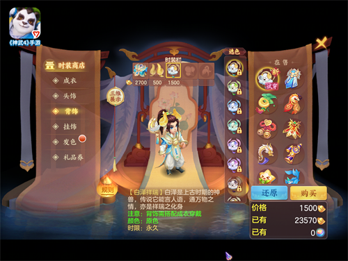 通天晓地,逢凶化吉。这周维护更新后,全新时装套装【白泽祥瑞】正式上线,欢迎各位少侠前往时装商城购买。