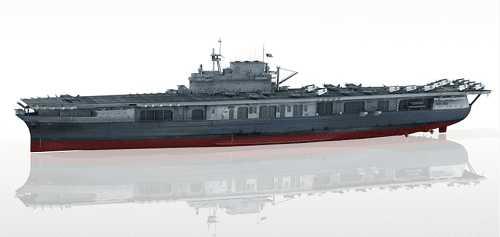 “约克城”号航空母舰,美国“约克城”级航空母舰首舰。作为第17特混舰队的旗舰,该舰在二战初期为美国海军转败为胜立下了汗马功劳,不仅参加了战争初期的一系列突袭行动,而且在珊瑚海海战和中途岛海战中也发挥了举足轻重的作用,击沉了日本“苍龙”号航空母舰。不幸的是,该舰最终在中途岛海战中沉没。