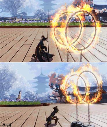 只见少侠们生龙活虎,往两只火圈中间就是这么一钻,动作快准狠,姿势帅气逼人,一看就是一位练家子。小少侠们则动身一跃,灵活地从火圈中间越过,看来小小江湖人已经功夫了得,多亏了师父平时催促我们练功,身姿已然变得轻盈又矫健了。
