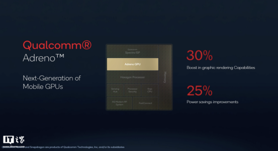 具体说,全新高通Adreno GPU 的图形渲染能力提升 30%,并且游戏时的能效提升 25%,看起来已经很不错了,但这只是高通Adreno
