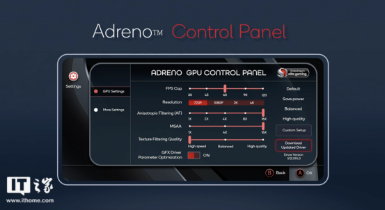 在用户层面,全新高通Adreno GPU还拥有了控制面板功能,可以让玩家能够在他们最爱的游戏中自定义关键 GPU
