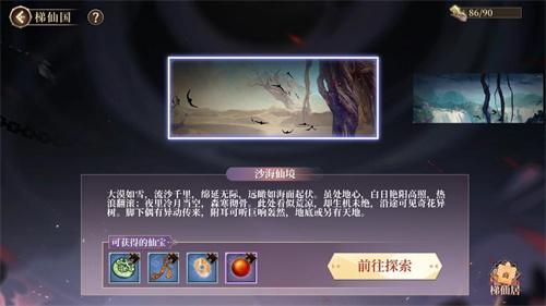 在探索梯仙国的过程中,可获得特殊的奖励——仙宝碎片,以及进一步铸炼仙宝所需的各类道具