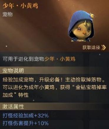 3、宠物成年礼包(推荐)198元,打怪经验加成+40%、金钻宝箱掉落+12%,dddd!!!如果氪了少年小黄鸡,那他就是必入。