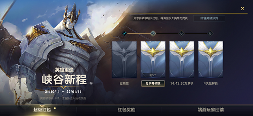 2、峡谷新程活动只能领取两个皮肤四个英雄,不能再多了,这个是固定的。