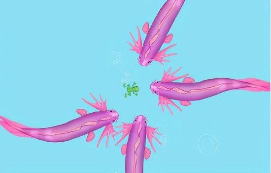 3、召唤神龙之复仇版玩法核心与我们小时候常玩的“大鱼吃小鱼”类似,不过游戏中额外添加了合成的游戏元素,玩家可以通过收集同级别或者低级别的生物,以合成更高级别的生物,最终合成神龙即可通关。