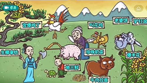 1、将弓放到鸡下面,然后点击鸡,组成“宫保鸡丁”。