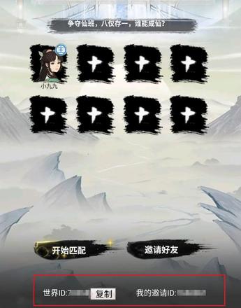 2、在自己的房间最下方,可以看到世界ID,也就是房间号,将房间号分享给想要邀请的仙友即可。