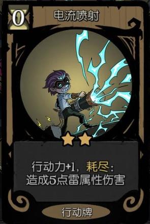 以单卡电流喷射为核心的玩法,思路是只拿易伤牌、行动力牌,牌组很精简没有过牌压力。优点是成型很快,前中期过图强势且稳定。缺点是由于输出的回合会耗尽行动力,导致于攻防不可兼得,面对高难度4-500血的BOSS有可能耗不过。