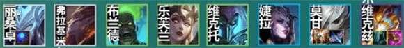 泰坦、莫甘娜、拉克丝、瑞泽、武器大师、芮尔、千珏、诺手。