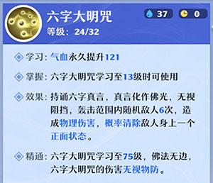 精通:六字大明咒学习至75级,佛法无边,六字大明咒的伤害无视物防。