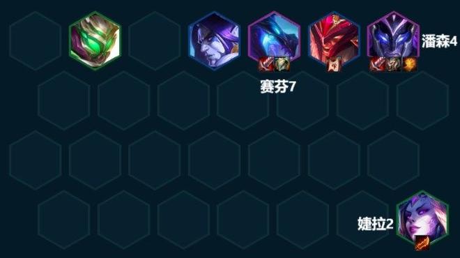 3-5/4-1拉七,根据外界战力选择大搜找赛芬+潘森+婕拉组成6幽影龙的基本阵容,还是卡利息慢慢补齐阵容。不管是什么搜法都要保证血量容错,一般来说在4-1之前补齐阵容大部分低费二星且确保有潘森+赛芬最好,亚索没来之前都上奥拉夫+贾克斯开4格斗。选秀有潘森必拿。