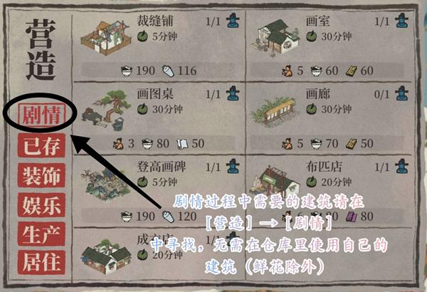 1、点击营造,进入到剧情中,用剧情里的杂物摊去做任务。