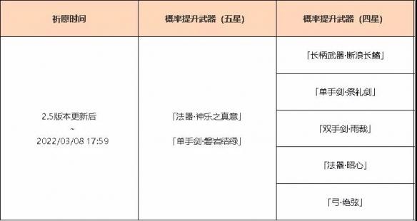●活动期间,限定四星武器「长柄武器·断浪长鳍」、四星武器「单手剑·祭礼剑」「双手剑·雨裁」「法器·昭心」「弓·绝弦」的祈愿获取概率将大幅提升!