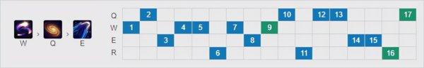 W:龙王的主要输出技能,利用W拉长星轨可以比较好的消耗对手,打拉扯;