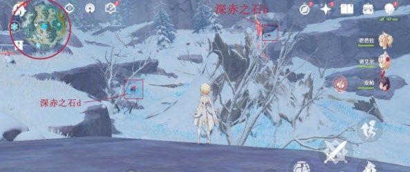 4个深赤之石,其中2个在坚冰的正前方,很容易找到。