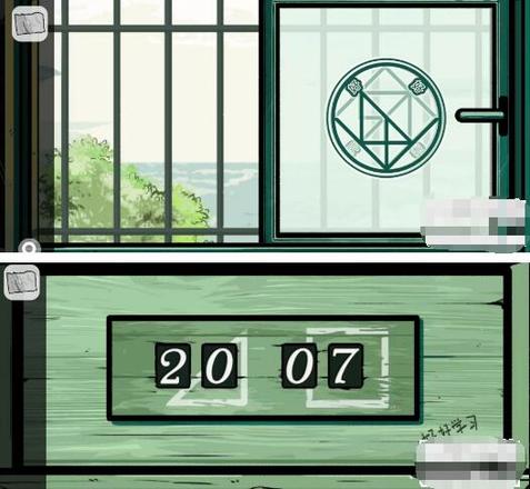 8、接着得到窗户把手之后将两个窗户拉到一起,根据窗户上的三角形和正方形个数得到密码就是:2007。
