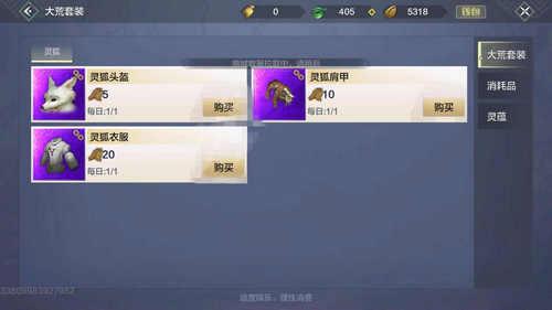 狐狸衣服可以在氏族商店中消耗20张大荒兽皮购买获得。
