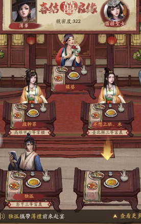 7.赴宴需要携带礼物,礼物能够增加人气,选择了礼物后就可以点击入座参加宴会了。