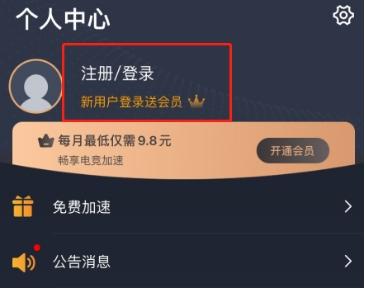 下载完奇游,记得注册账号,注册成功后可以免费领取奇游会员加速时长。