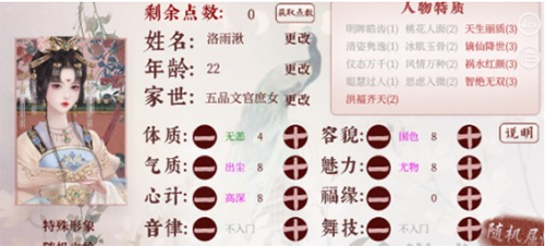 4、如果我们要正常攻略的话,开局就要点属性点的好一些,把趋炎附势技能点满,然后在遇到宫女潇潇后,培养好感,在之后的争锋会很有用,最后要一个孩子就可以了;