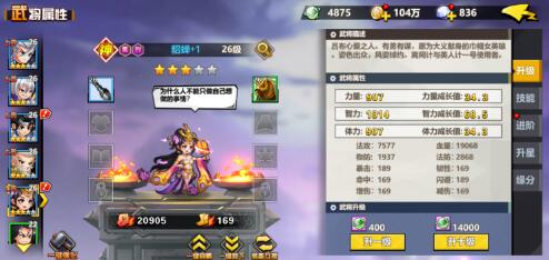 第1位:貂蝉,貂蝉这个神将特点实在是太多了,有获取难度较小,容易获得,也有养成代价较小,性价比高等等,还有貂蝉本身英雄强度就是非常高的,可以放到游戏后期依然可以上阵。