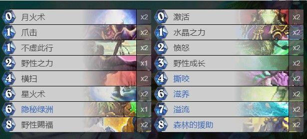 核心思路:溢流、滋养过牌,开局找森林的援助铺场,利用野性赐福给予BUFF。低费法术都是用来凑数刷0费的。