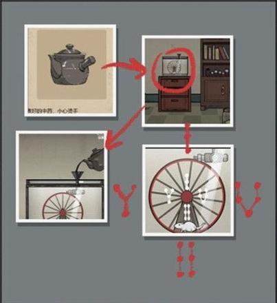 13、拾取煮好的药,拿到二楼办公室给小白鼠饮用,得知木轮上的线索。