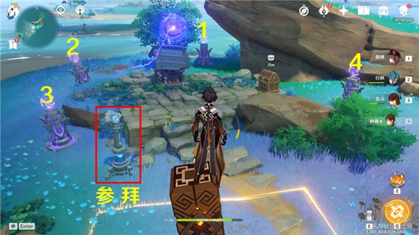 参拜尊像,神龛上方会有一个雷球指引我们按顺序激活雷元素方碑