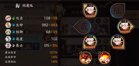 如果只有二修的玩家可以借用组成三修;或者点出技能喜忧怒恨,阿修罗爆伤最高即可。只有一修的玩家,可以使用烬来替代收尾式神阿修罗。