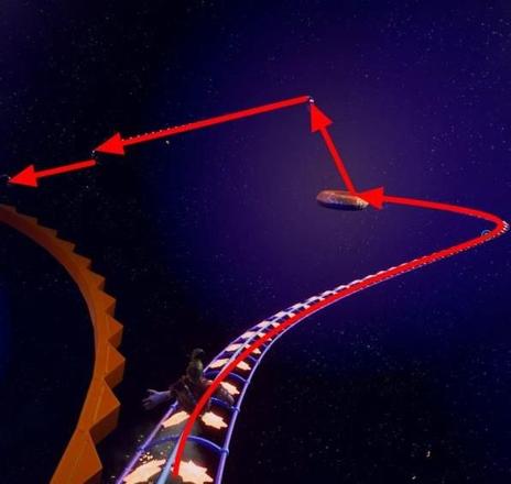 这个房间首先要利用滑轨,这个滑轨有两条路线,路线一如下图所示: