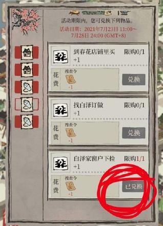 2、也就是官府公告内,用搜查令兑换的三个选项,选“白泽窗户下”,得到枕头。