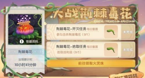 具体玩法:根据任务指引,先获得火灵珠,之后可以在固定时间内攻击boss,获得藤曼道具