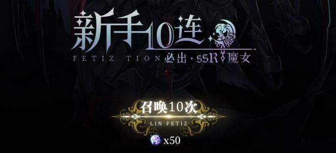 进入游戏过完第一章剧情后,我们就会在抽卡界面发现,有新手只需要花50钻石就能进行的十连,该十连还必出三个SSR之中的一个。