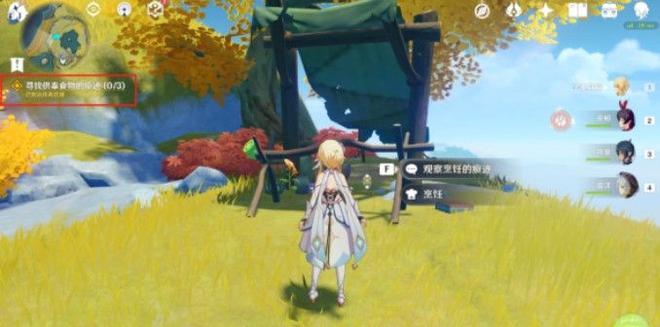 3、然后玩家跟着任务指引寻找三处烹饪做食物的地方,旁边还能找到一些做食物的材料,其中: