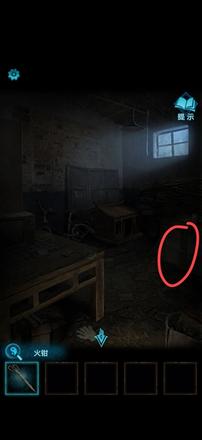 进去后,用火钳拉灯绳,开灯,开灯后点击旁边的桌子