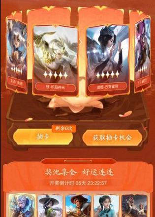 登录游戏 分享等可以抽卡(卡就是皮肤和英雄) 这些卡分为五个等级。