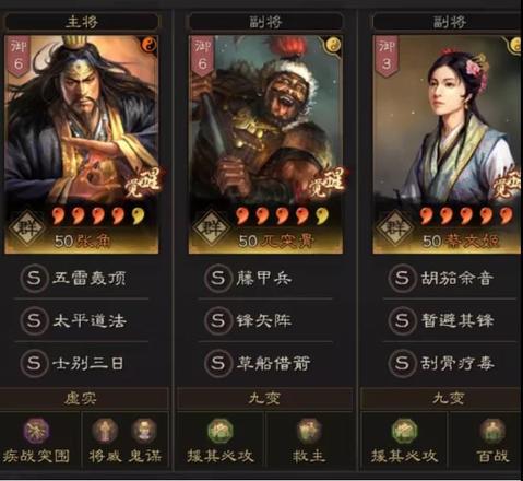 不同的是,输出方面,由这里的张角替代了司马懿,直接太平道法走起,在跟司马懿同样具备高奇谋的基础上,张角的五雷轰顶还能提供震慑能力,震慑反过来又为本队保驾护航。