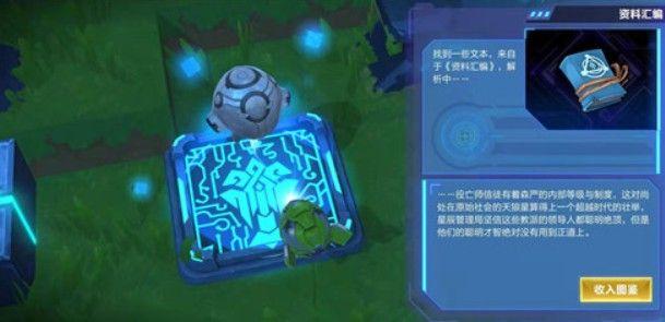 搬着箱子进入了遗迹之后我们只需要走到中间的位置上就可以发现遗失的机器人了,然后让自己的随身智能进行调查就可以获得一份资料汇编。