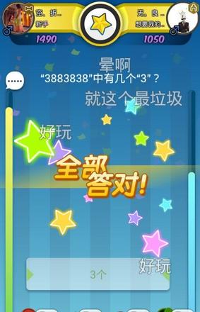 每一局对战,玩家双方都会出现同样的提取去答,先答比后答得分高,每一题秒答对了话,得分200,答对的越多,得分越高。