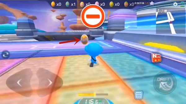 首先玩家需要进入特定赛道之后和起跑线前不远处的兔子进行互动,进行任务的领取,才可以开始进行任务。从下图的上方可以看出,总计需要寻找的彩蛋应该一共有6枚,而这些彩蛋都分布于赛道当中的不同位置。有些位置是比较好发现的,只要玩家不要跑太快、注意观察,就能够发现,但也有一些彩蛋的分布点比较刁钻。