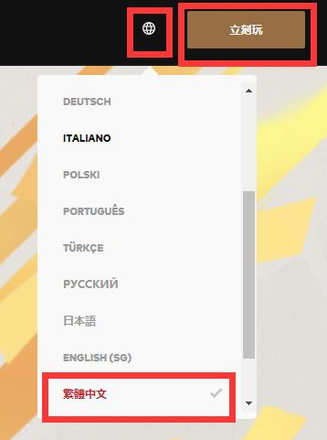 想要注册《英雄联盟手游》账号,我们需要先打开《英雄联盟手游》台服的官网(wildrift.leagueoflegends.com/zh-tw/)。在打开的页面点击右上角的“立刻玩”按钮,如果页面是英文的,可以点击左边的地图图标选择繁体中文。