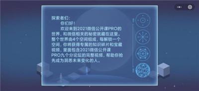 解锁能量枢纽、天文馆、钟表店和照相馆四个密室逃脱空间,获得今年微信公开课PRO不同分论坛观看权益。