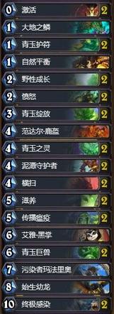 青玉德这套卡组可谓是当今天梯T0卡组,凭借着一张传播瘟疫在前期苟活,凭借着终极感染在后期强势返场,又由于青玉护符的存在,在后期一个青玉比一个大,打的对面欲哭无泪,故将青玉德排在这份榜单的第三名。