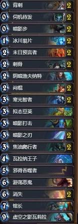 领先对面好几张疲劳,完成超高数量的斩杀。尽管这张牌退环境了,但是凭借盗贼DK的出现,爆牌贼重新回到人们的视野。靠着闷棍,消失来解场面,在最后凭借爆牌鱼和暗影之刃的配合,完成最后较高的输出,来斩杀对面,可以说再强的场面也没有用。故把爆牌贼排在第二名。
