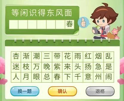 答春日诗句:玩家可从给定字库中选择正确的文字填充完整诗句;
