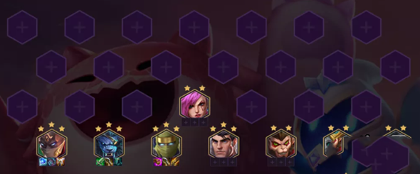 6人口凑出3刺客3换型3狂野阵容,没有狻猊之心可以用逆鳞战姬代替打工。6级是个阵容的关键运营时刻,此时要卡在6级在3-2大D一波找到阵容体系卡确定阵容。