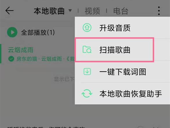 qq音乐扫描本地歌曲在哪游乐园2022-02-25 22:28:04分类:游戏答疑qq音乐扫描本地歌曲在哪 1、打开qq音乐app,点击右下角我的,点击【本地】选项。 2、点击右上角的三点图标,点击扫描歌曲即可。以上是 qq音乐扫描本地歌曲在哪 的全部内容,来自【游乐园】,转载请标明出处!